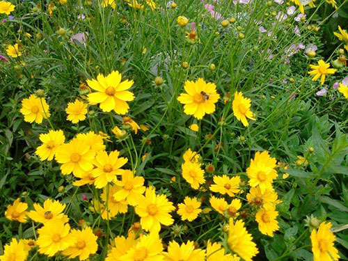 金雞菊,金雞菊屬一年生或二年生草本植物,高可達60厘米,葉片羽狀分裂,裂片圓卵形至長圓形,頭狀花序單生枝端,外層總苞片與內層近等長,舌狀花黃色,基部紫褐色,狀黑紫色。瘦果倒卵形,7-9月開花。