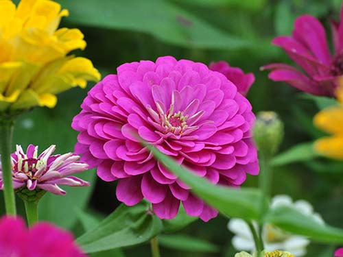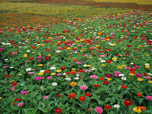 百日草,一年生草本植物。側枝呈杈狀分枝。夏秋開花,頭狀花序單生枝頂,花徑約10厘米,花瓣顏色多樣,花期長,花型變化多端,基本上都是重瓣種。